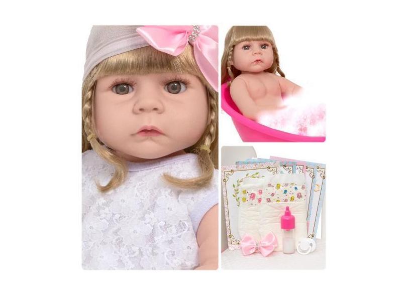 O menor preço encontrado no Brasil para Boneca Reborn Grande Loira Cabelo Comprido Pode Dar Banho - Cegonha Re atualmente é R$ 137,59.