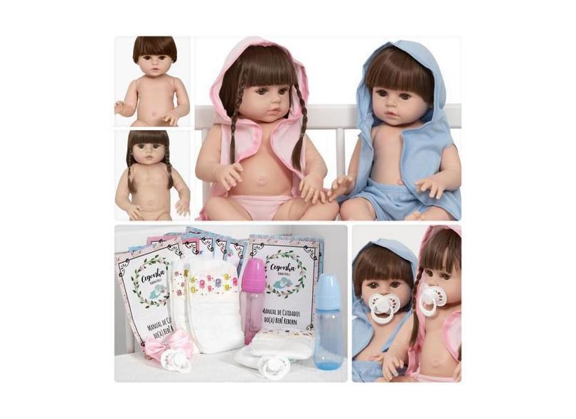 Boneca Reborn Infantil Casal Gêmeos Corpo De Vinil Enxoval - Cegonha R