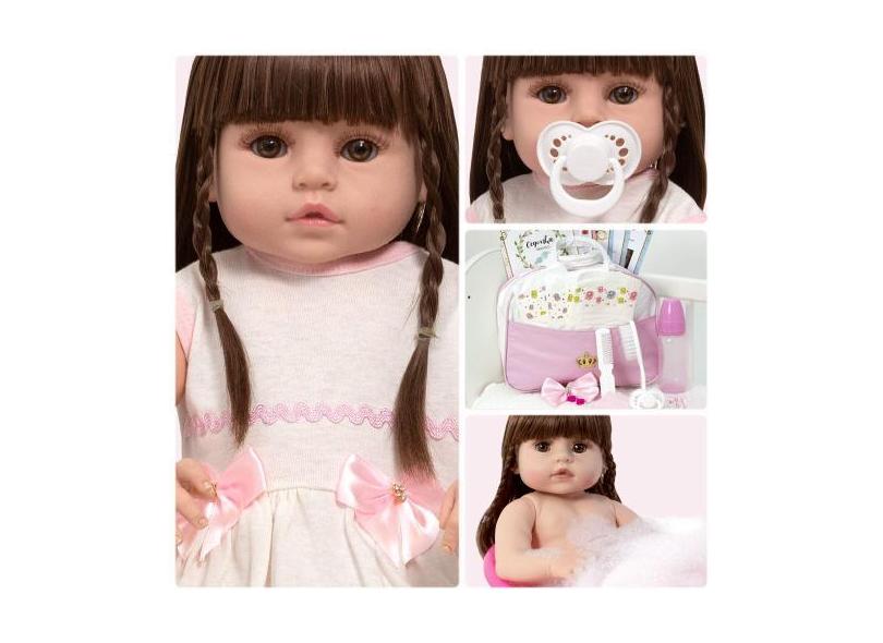 Boneca Reborn Laura Cabelo Castanho Linda Com Itens Enxoval - Cegonha