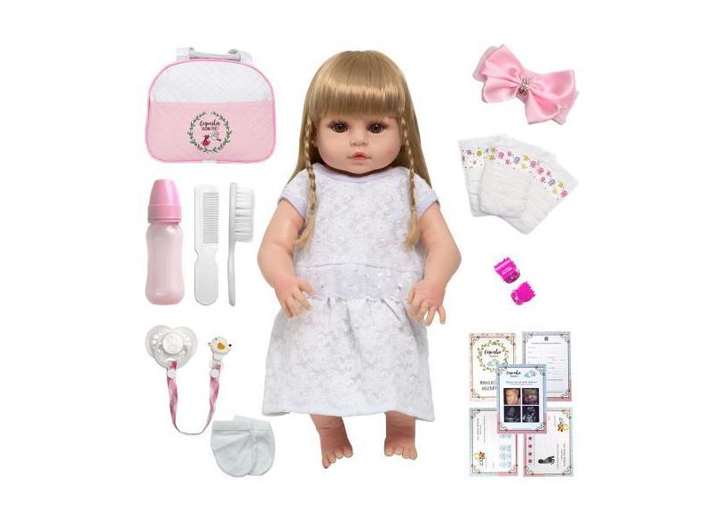 Boneca Reborn Laura Loira Vestido Branco Enxoval 20 Itens - Cegonha Re