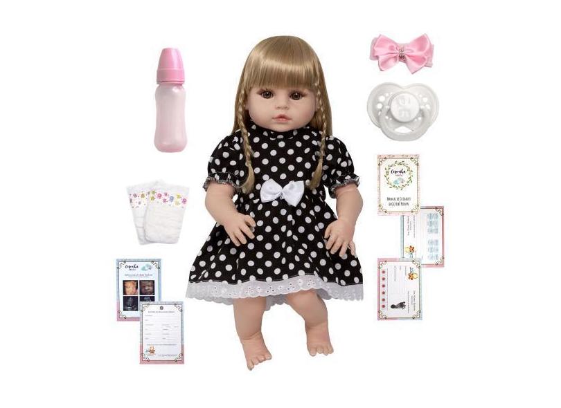 Boneca Reborn Loira 100% Silicone Gatinha Infantil + Itens - Cegonha R