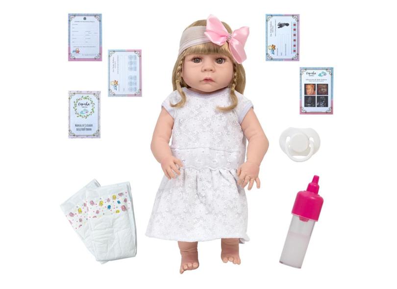 Boneca Reborn Loira Corpo de Vinil Pode Molhar + Enxoval
