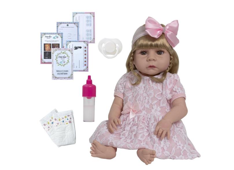 O menor preço encontrado no Brasil para Boneca Reborn Loira Gatinha Vestido De Renda Enxoval Baby atualmente é R$ 161,59.
