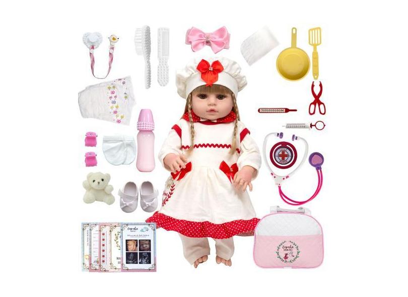 Boneca Reborn Loira Olho Castanho Princesa Completa Itens - Cegonha Re
