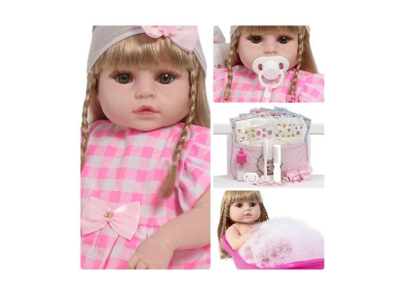 Boneca Reborn Loira Princesa Vestido Rosa Vários Acessórios - Cegonha