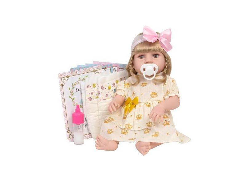 Boneca Reborn Loira Realista Vestido Coroa Kit 13 Itens