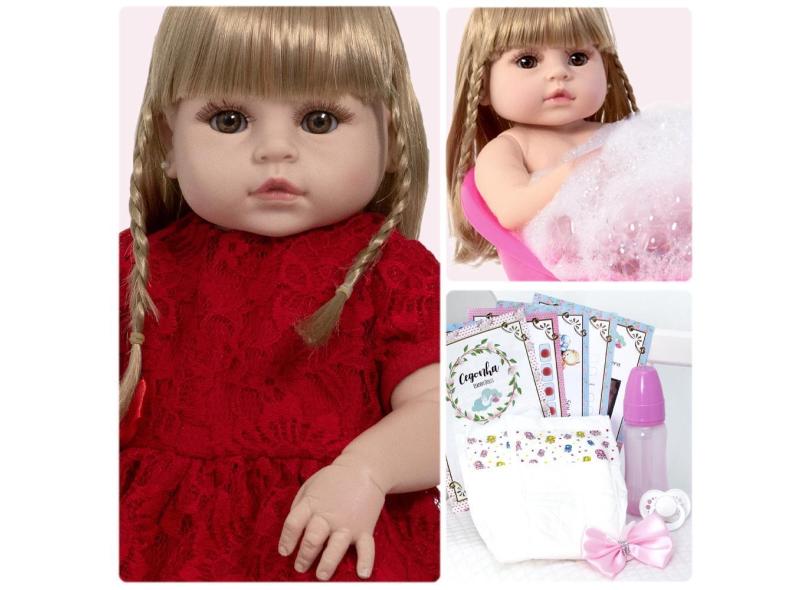 Boneca Reborn Loira Recem Nascida 100% Vinil Com Enxoval