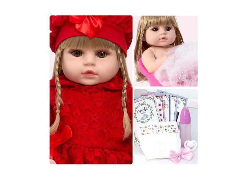 Boneca Reborn Loira Toda De Vinil Siliconado Pode Dar Banho - Cegonha