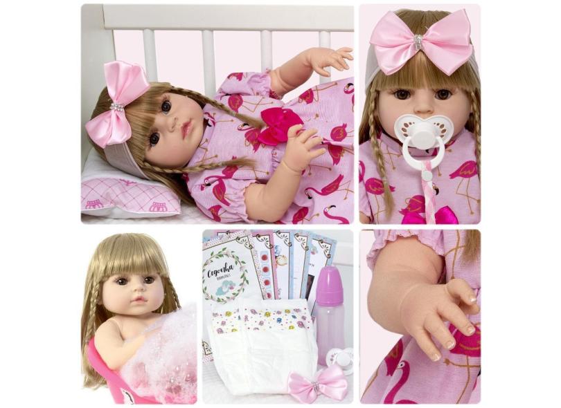 Boneca Reborn Menina Bebê Loira Corpo De Silicone 13 Itens