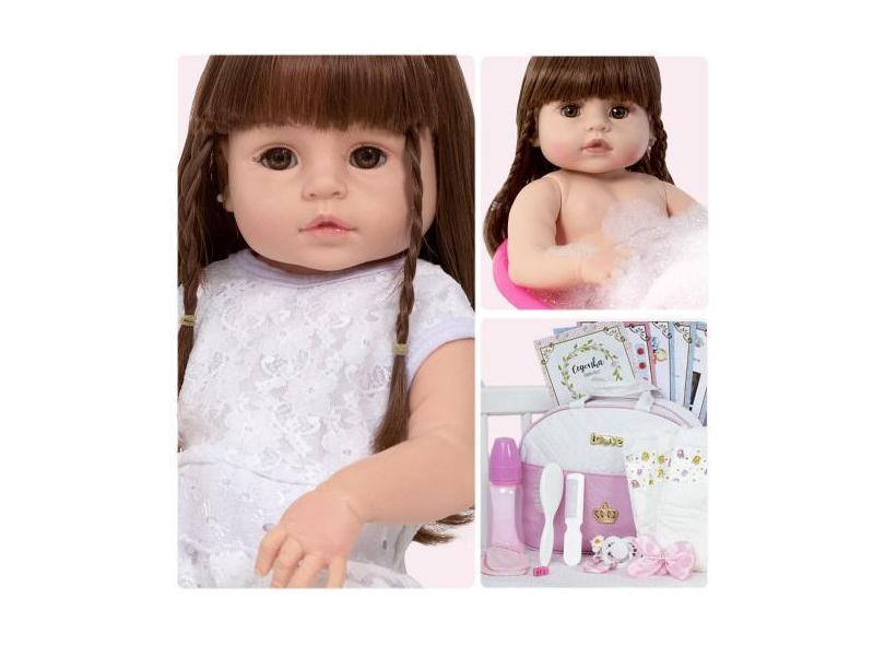 Boneca Reborn Menina Corpo De Vinil Pode Dar Banho 20 Itens - Cegonha