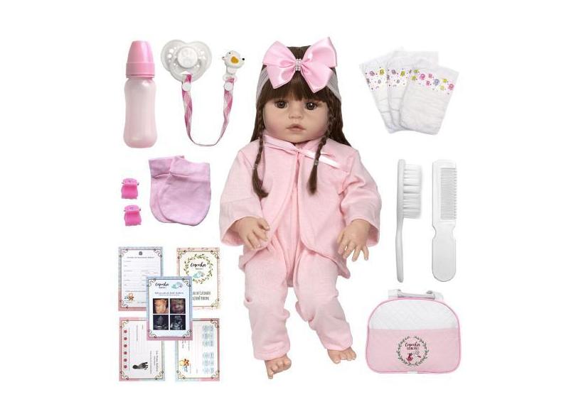Boneca Reborn Menina Fofa Completa + Lindos Acessórios Bolsa - Cegonha