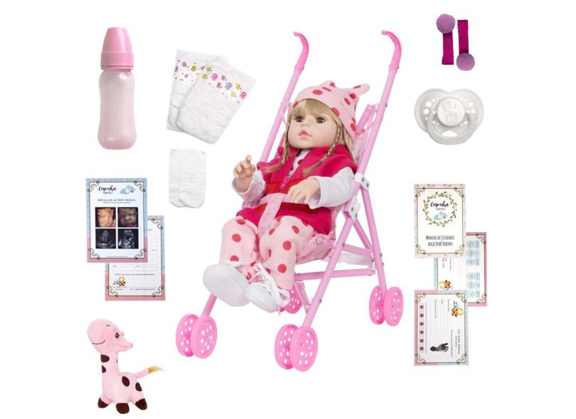 Boneca Reborn Menina Girafa 46cm Pode Banho Com Carrinho