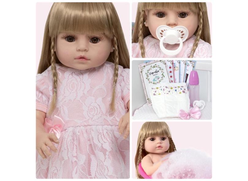 Boneca Reborn Menina Loira 100% Silicone Completa Bonita