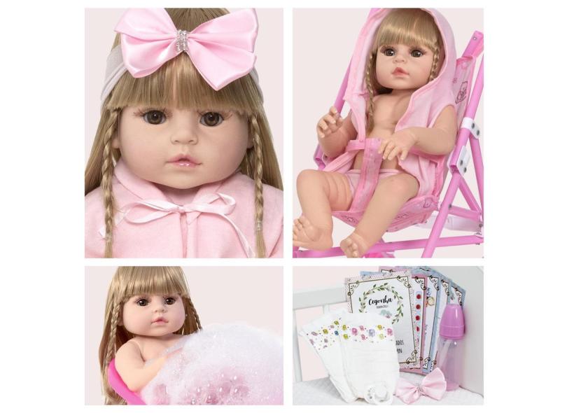 Boneca Reborn Menina Loira Realista Com Carrinho Infantil