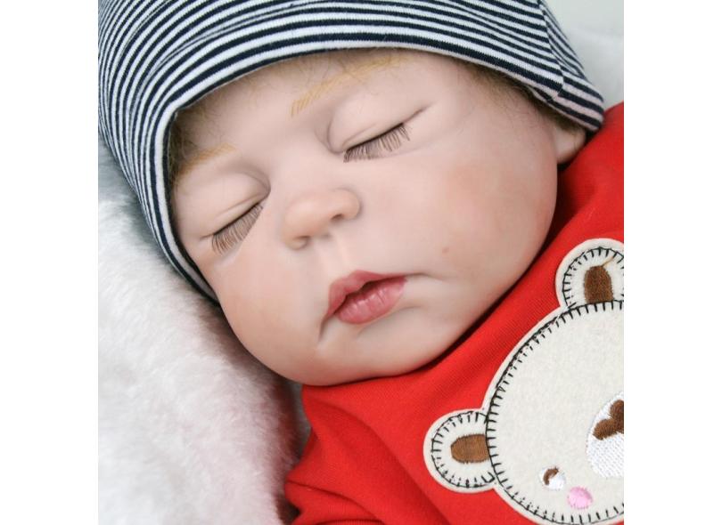 Boneca Reborn Menino Corpo de Silicone Cabelos Fio a Fio