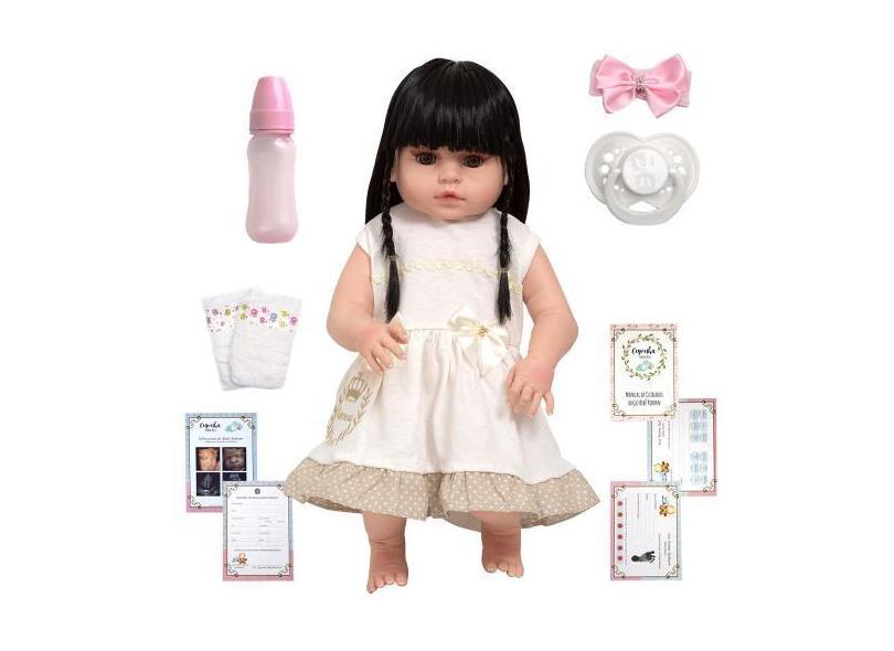 Boneca Reborn Morena Olho Castanho 46cm Completa + Itens - Cegonha Reb