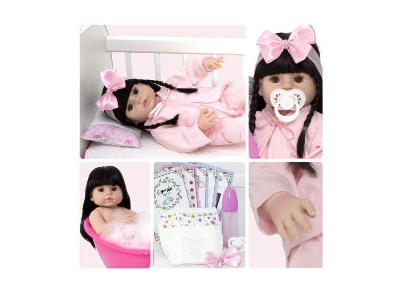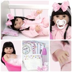 Boneca Reborn Morena Realista Roupão Pode Banho + 13 Itens - Cegonha R