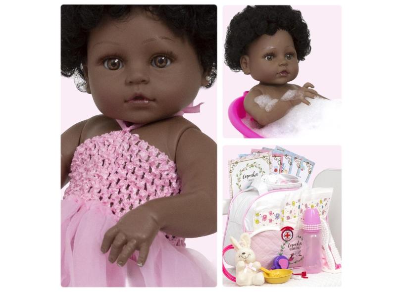 Boneca Reborn Negra Bailarina Coelhinha 46cm Acessórios Luxo