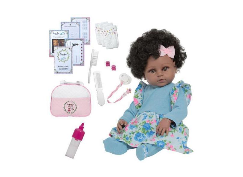 Boneca Reborn Negra Corpo Vinil Siliconado Bolsa 20 Itens - Cegonha Re