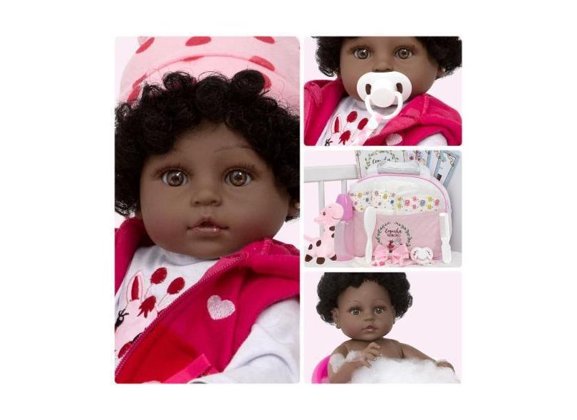 Boneca Reborn Negra Girafa 100% Silicone Com Bolsa 22 Itens - Cegonha