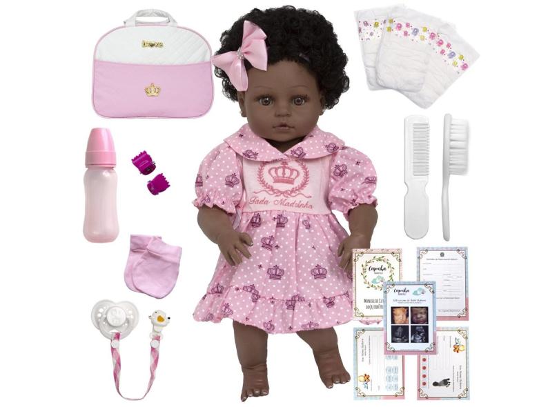O menor preço encontrado no Brasil para Boneca Reborn Negra Princesa Pode Dar Banho Enxoval Completo atualmente é R$ 166,52.