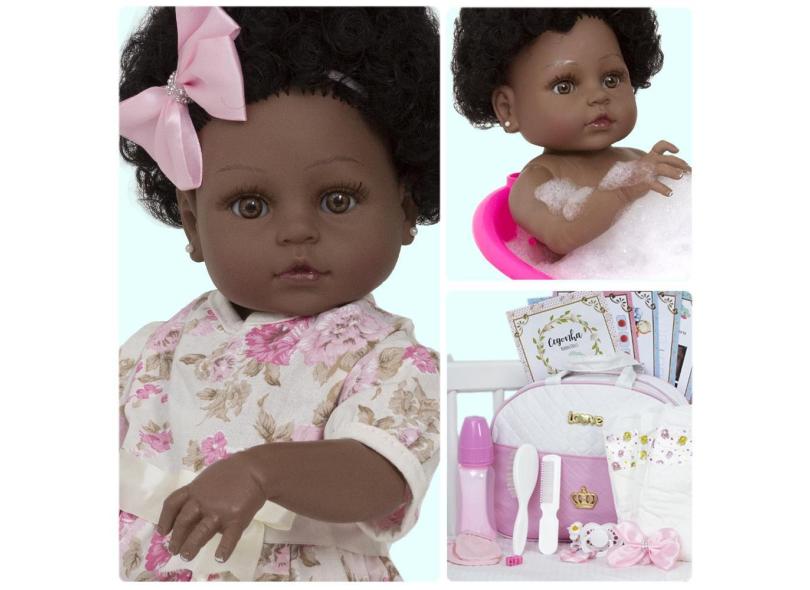 Boneca Reborn Negra Recém Nascida Enxoval Completo 20 Itens