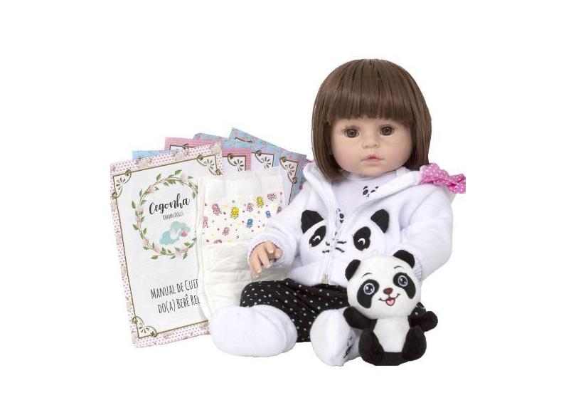 Boneca Reborn Pandinha Fofa Realista Completa Pode Dar Banho - Cegonha