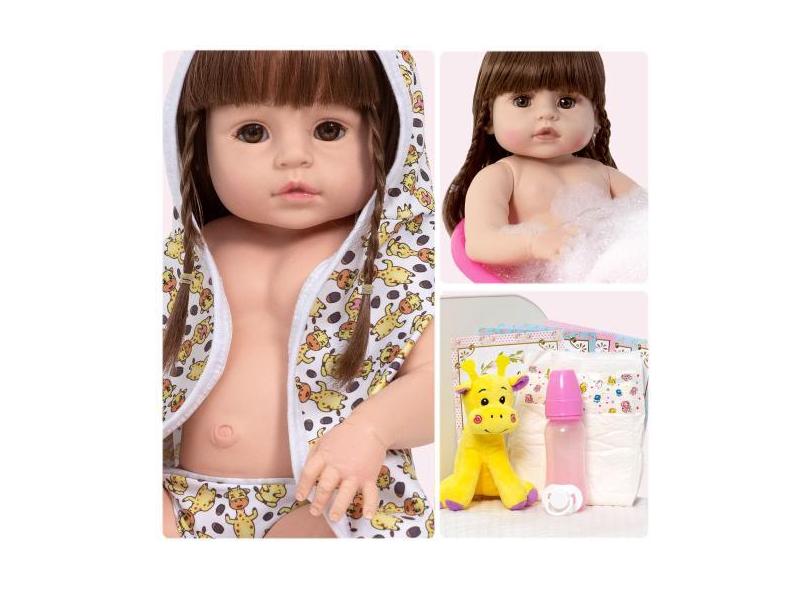 Boneca Reborn Princesa Girafa Cabelo Castanho Pode Dar Banho - Cegonha
