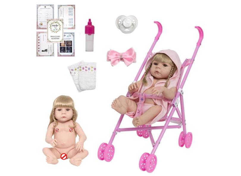 Boneca Reborn Princesa Menina Loira Linda Com Vários Itens