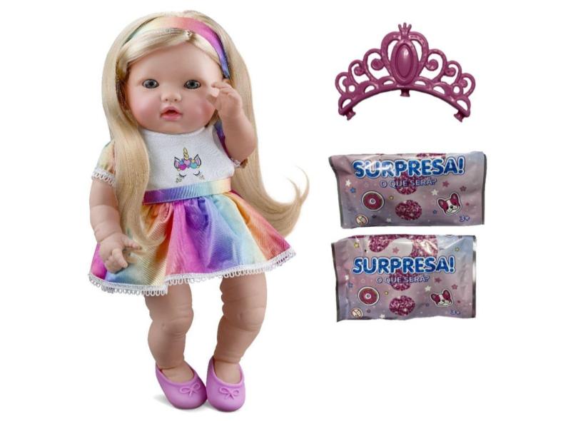 Boneca Reborn Princesa Menina Unicórnio 36cm C/ 2 Surpresas