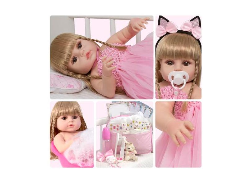 Boneca Reborn Realista Bailarina Loira Kit 22 Acessórios