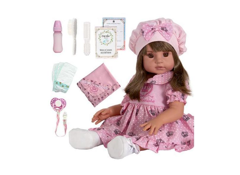Boneca Reborn Realista Castanho Com 8 Acessorios - Cegonha Reborn Doll
