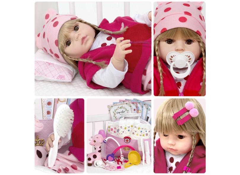 Boneca Reborn Realista Girafa Cabelo Loiro + Acessórios Luxo