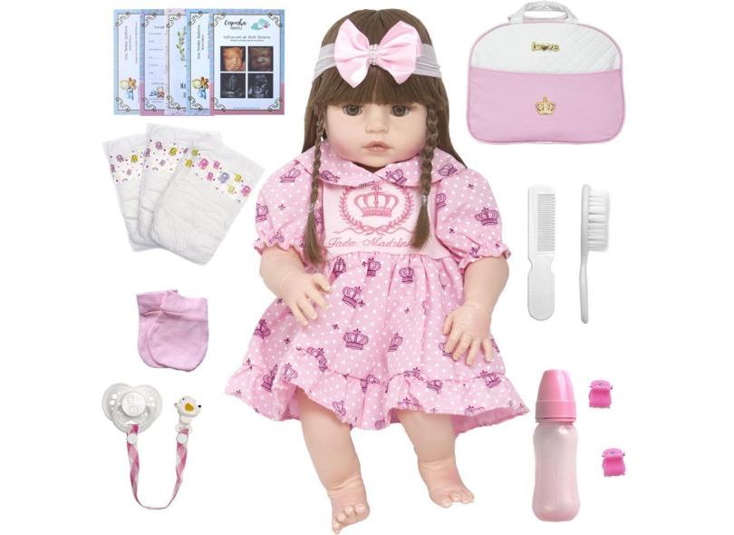 Boneca Reborn Realista Princesa Baby Valentina 20 Acessórios