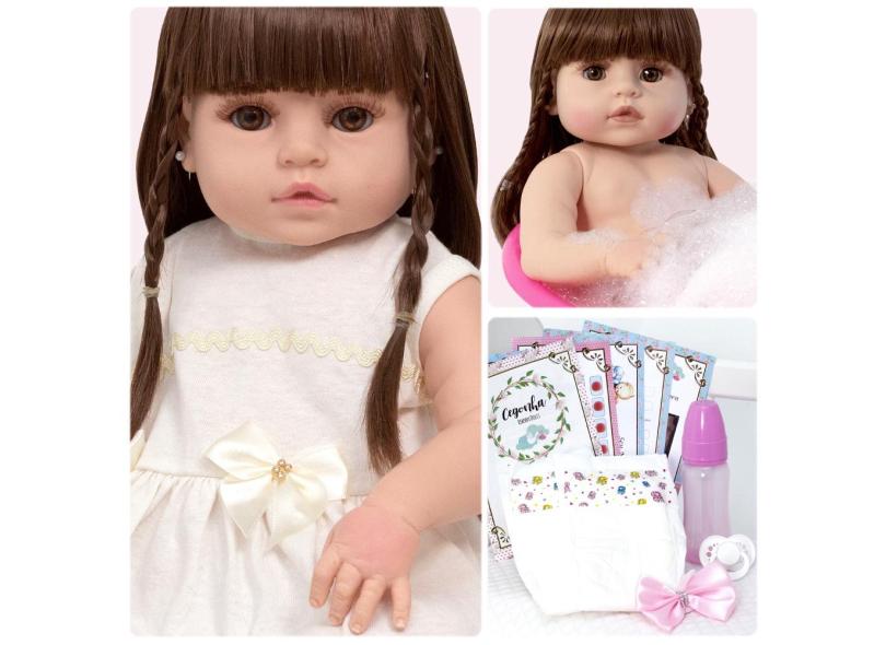 Boneca Reborn Recem Nascida Baby Corpo de Vinil Pode Banhar