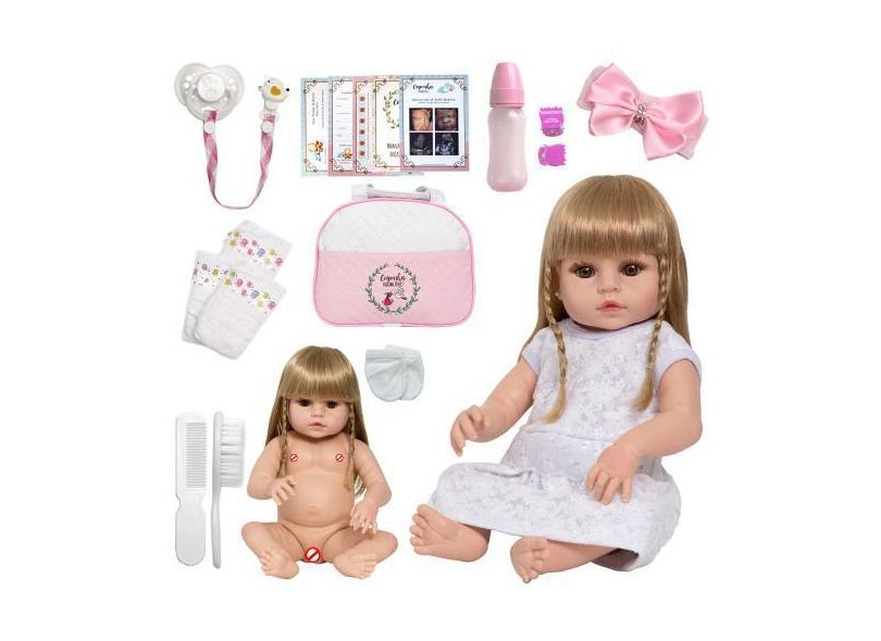 O menor preço encontrado no Brasil para Boneca Reborn Recém Nascida Loira 100% Vinil Com Bolsa Itens - Cegonha atualmente é R$ 210,61.