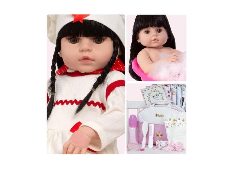 Boneca Reborn Recém Nascida Morena Bolsa Vários Acessórios - Cegonha R