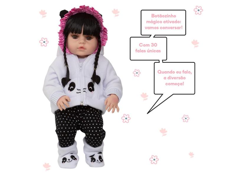 Boneca Reborn Recém Nascida Princesa Panda Baby Fala e Chora