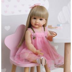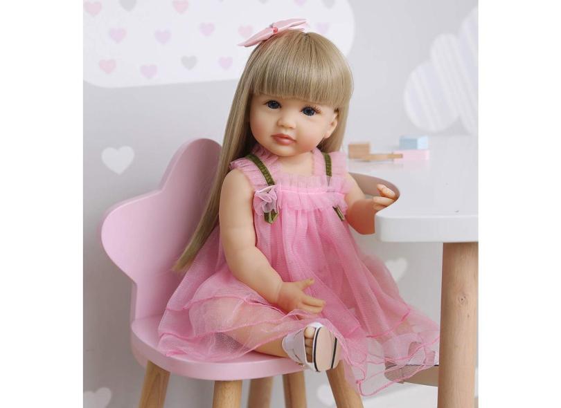 Boneca Reborn roshuan, menina de 55 cm com cabelo loiro e vestido rosa