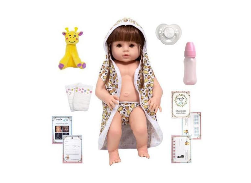 O menor preço encontrado no Brasil para Boneca Reborn Silicone Girafa Saída De Banho Cabelo Longo - Cegonha Re atualmente é R$ 151,27.
