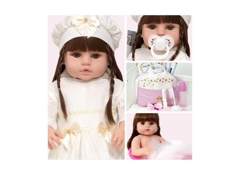 Boneca Reborn Silicone Princesa Cabelo Castanho + Acessórios - Cegonha
