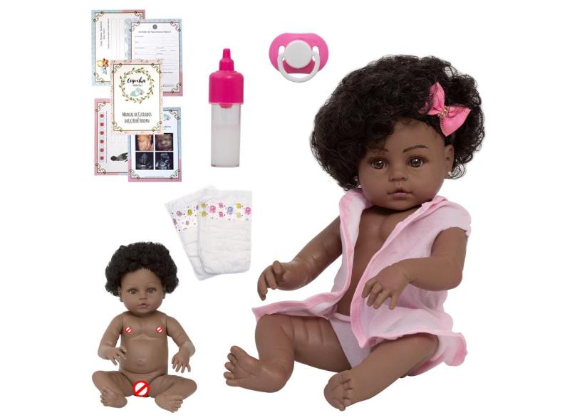 Boneca Reborn Vinil Siliconado Negra Com Pagão + Acessórios