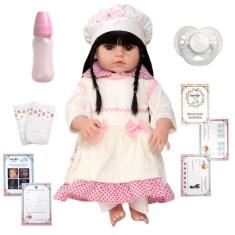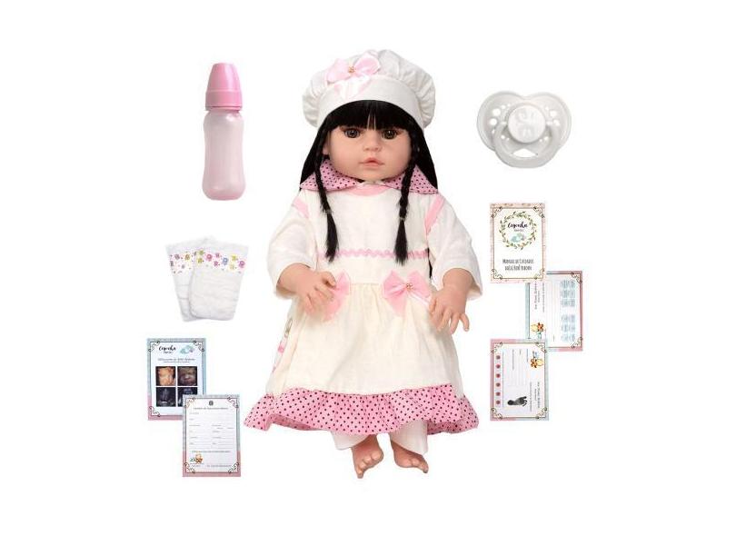 Boneca Reborn Vinil Siliconado Pode Dar Banho Cabelo Preto - Cegonha R