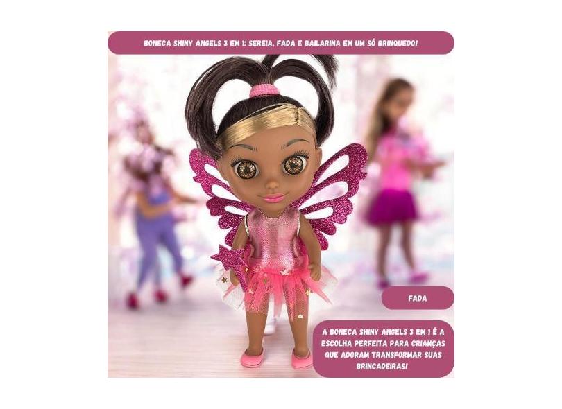 Boneca Shiny Angels 3 Em 1 Sereia Fada E Bailarina Menina Criança Dive