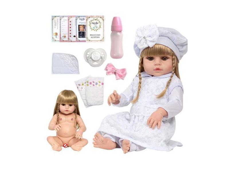 O menor preço encontrado no Brasil para Boneca Tipo Reborn Cabelo Longo Loira Com Chupeta Kit Itens - Cegonha atualmente é R$ 197,71.
