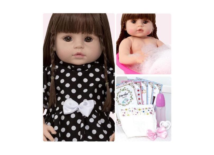 Boneca Tipo Reborn Cabelos Castanhos Princesa Com Chupeta - Cegonha Re