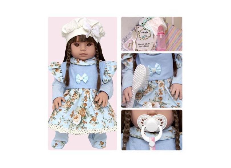 Boneca Tipo Reborn De Silicone Cabelo Castanho Com Enxoval - Cegonha R