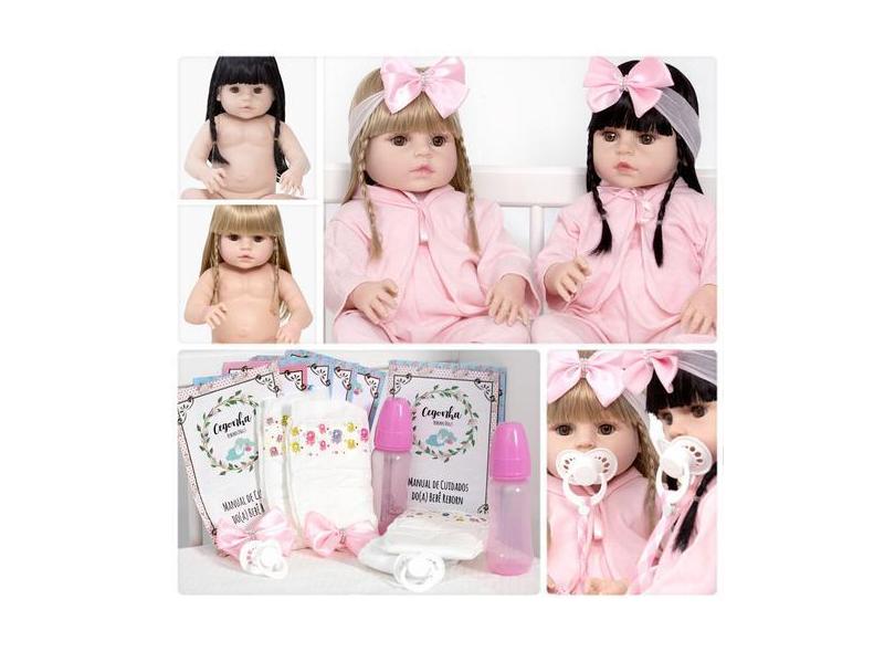 Boneca Tipo Reborn Gêmeas Barata Princesas 26 Itens Enxoval - Cegonha
