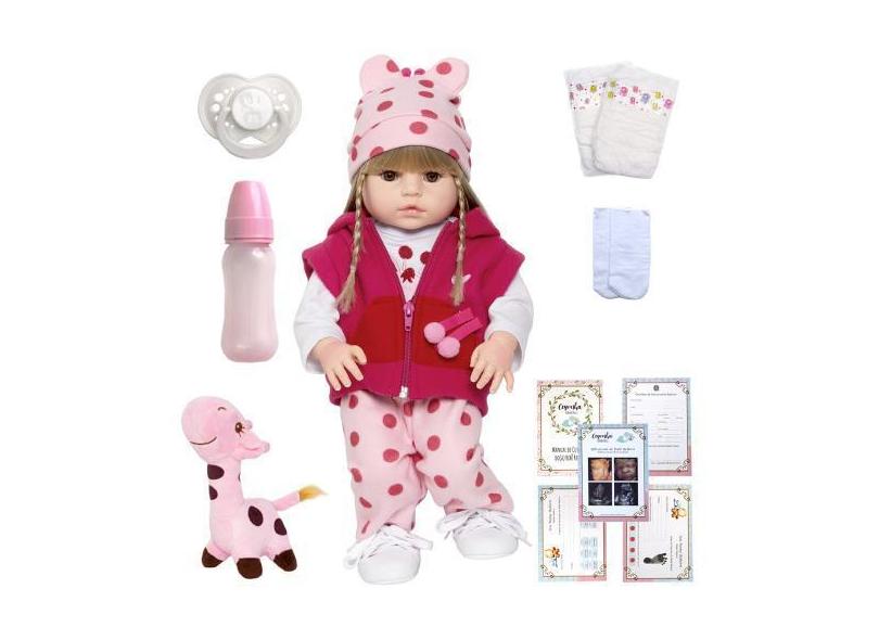 Boneca Tipo Reborn Girafa Corpo Inteiro Silicone + 15 Itens - Cegonha