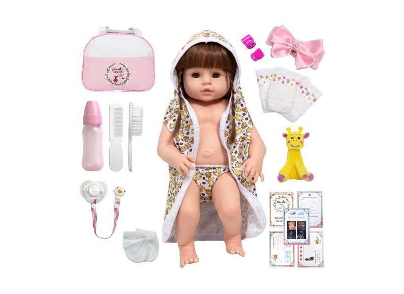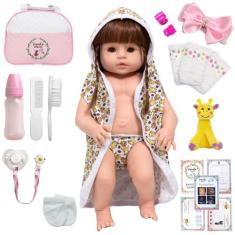 O menor preço encontrado no Brasil para Boneca Tipo Reborn Girafa Saída De Banho Bolsa Acessórios - Cegonha Re atualmente é R$ 176,21.